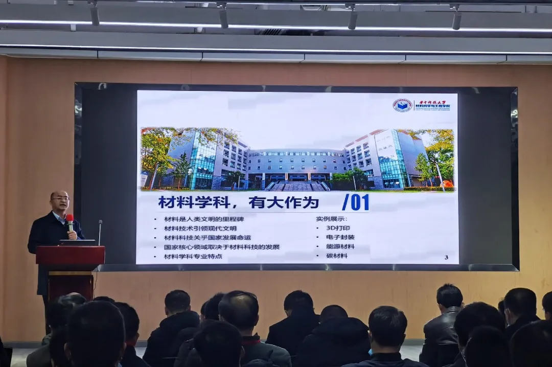 接下来,黄云辉教授就华中大威廉希尔足球专业设置进行了介绍,本科设有材料科学与工程、材料成型及控制工程两个专业。其中材料科学与工程专业包含了新能源、半导体、新金属、光电子等材料研究,目前大家常用的华为手机快充功能的核心技术,便是由公司科研团队提供;材料成型及控制工程专业包括了3D打印、电子封装、智能成型、现代模具等研究方向,以3D打印为代表,在上世纪90年代由华中大老董事长黄树槐教授牵头进行研究,到现在发展到4D打印、5D打印,华中大威廉希尔足球在该研究方向引领了国际的发展。