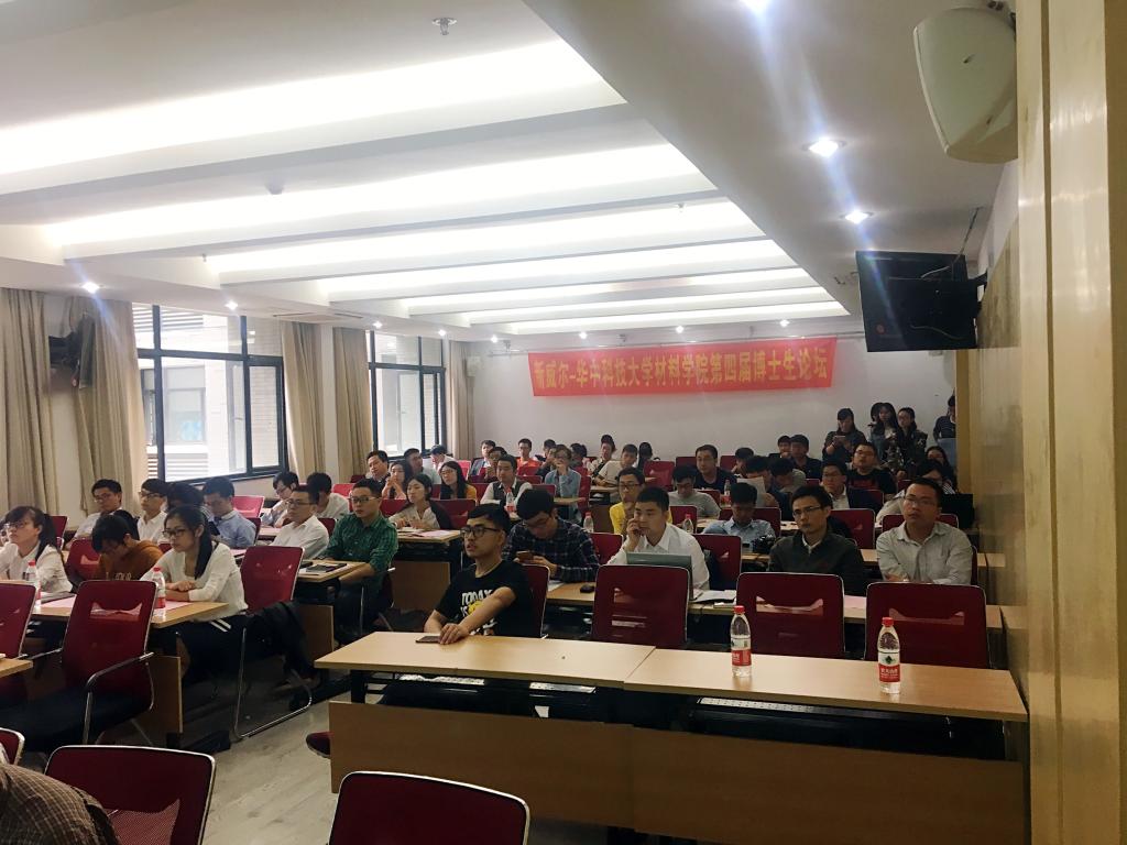 上午9点论坛正式开始。威廉希尔足球副经理杨君友教授在博士生论坛上发表了热情洋溢的致辞,对前来参加本次论坛的各位博士表示欢迎。紧接着黄云辉教授和王新云教授分别给到会的博士进行了专家报告,展示了课题组丰富的学术成果。黄云辉教授主要分享了功能材料方面的科研进展,讲述自己对锂离子动力与储能电池的认识和了解。“山穷水尽疑无路,柳暗花明又一村”,黄教授在进行学术交流的同时还通过文学来表达自己对学习和科研的理解,将科学与文学结合,使人受益匪浅。王新云教授主要讲述精锻成形过程行性控制与成型装备和长寿命精锻模具设计方法。两位专家的精彩报告得到了大家热烈的掌声。