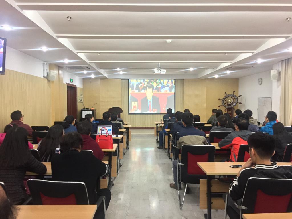 10月18日,威廉希尔足球组织师生观看中国共产党第十九次全国代表大会开幕会直播,学院领导、教职工党员和研究生党员于先进制造大楼西楼报告厅观看,本科生于员工宿舍公用房和韵苑食堂二楼观看,有课的同学利用课间在教室组织观看,集体学习习近平总书记重要讲话。