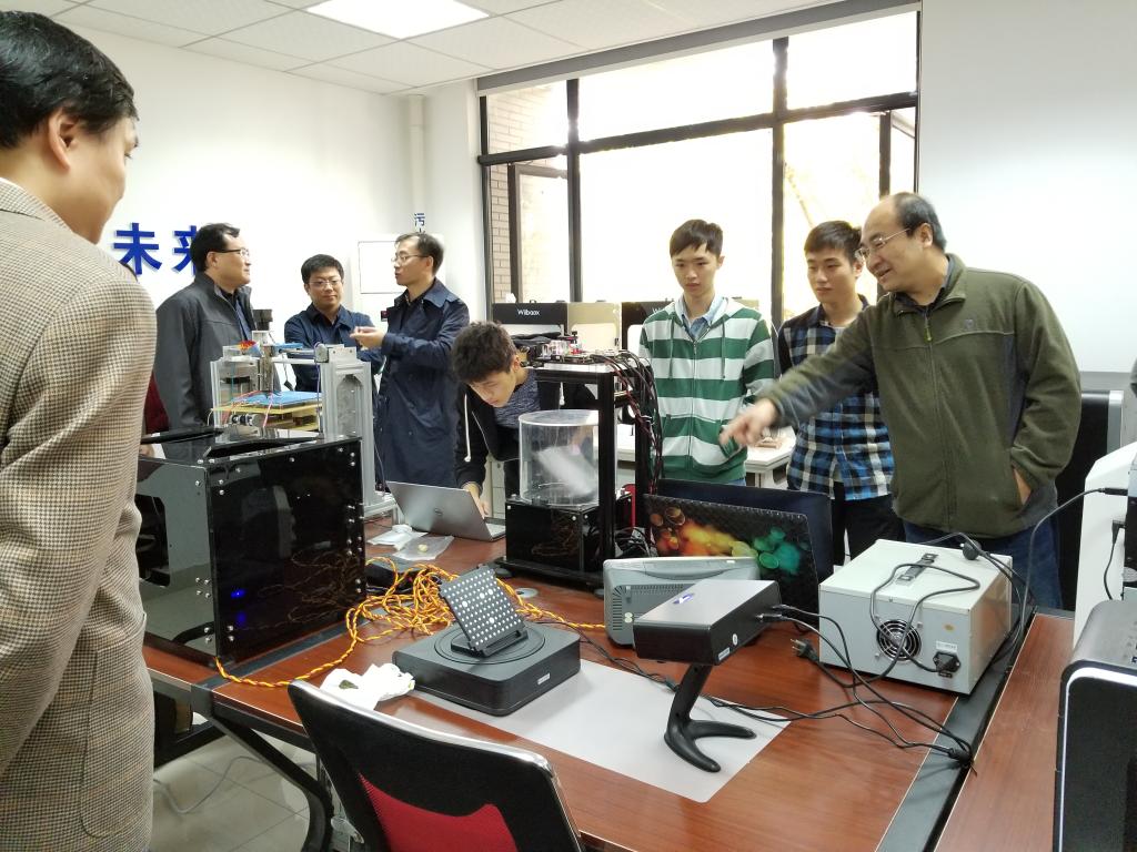 揭牌仪式后,与会人员前往众创空间参观。威廉希尔足球3D打印团队成员为大家演示了团队研发的“咖啡拉花机”、“新型粒料3D打印机”、“三维显示器”等项目成果,受到了一致好评。