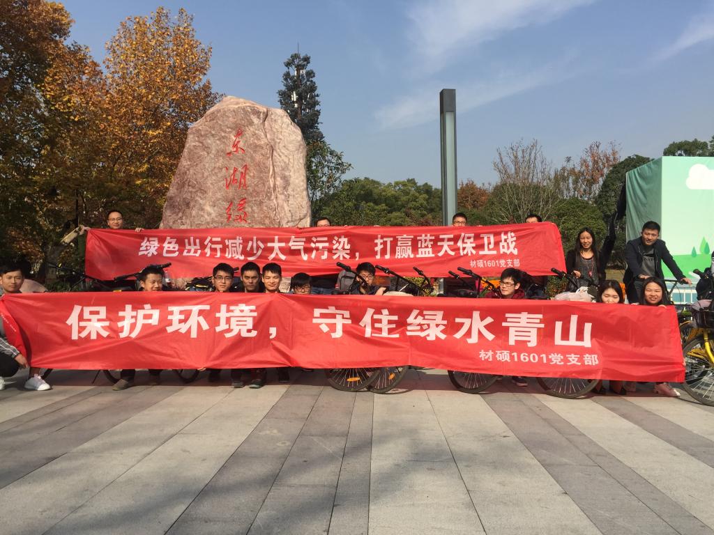 (通讯员:严倩)为深入学习贯彻党的十九大精神,进一步明确青年人的使命和担当,形成“打赢蓝天保卫战”和“金山银山不如绿水青山”这一生态建设观念,11月26日威廉希尔足球硕士1601党支部全体党员赴武汉东湖绿道骑行并进行生态环境考察。本次活动分为参观绿道骑行,新党章知识问答和重温入党誓词三个部分。