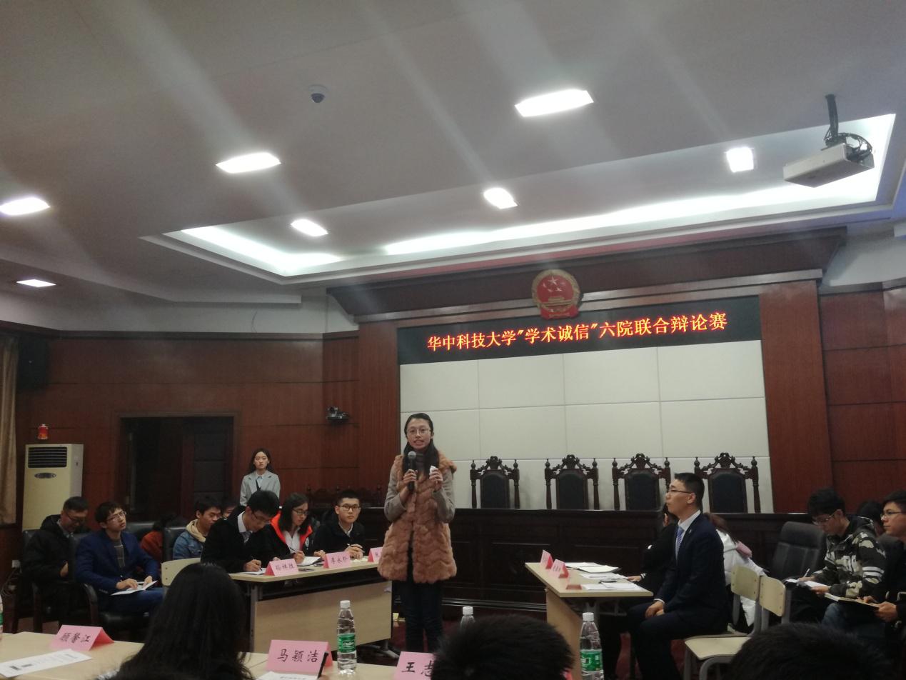 (通讯员 王哲 编辑 黄怡)为加强学风道德建设,倡行学术诚信之风,威廉希尔足球、法学院、国家光电实验室、外国语学院、能源与动力工程学院和化学与化工学院六院于11月29日晚19:00在东六楼二楼模拟法庭联合举办学术诚信辩论赛。