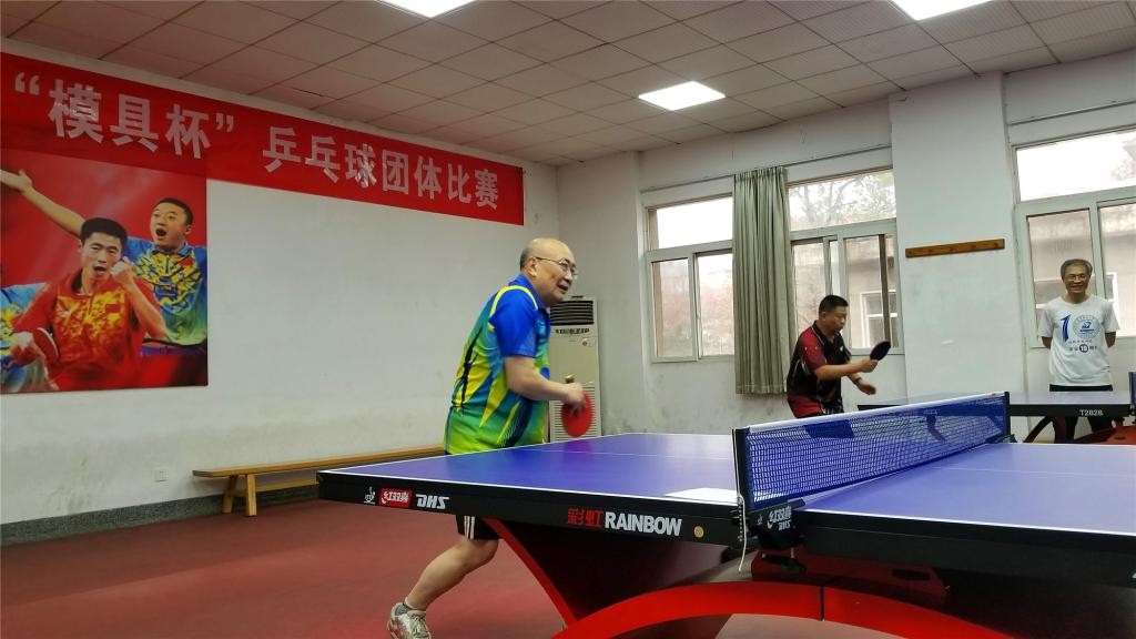 比赛分为两个阶段:小组赛和淘汰赛,采取五场三胜制,每场遵循三局两胜的规则。在各队代表抽签确定出场顺序后,比赛正式开始。乒乓室内气氛一片火热,选手们各显风采,观战选手也在一旁为自己的队伍呐喊加油。其中李德群院士对阵张祥林这局比赛吸引了观众的围观,李院士凝神静气,技艺娴熟,攻、守转换游刃自如,精气神以及技战术的发挥,让很多年轻选手都自愧不如。