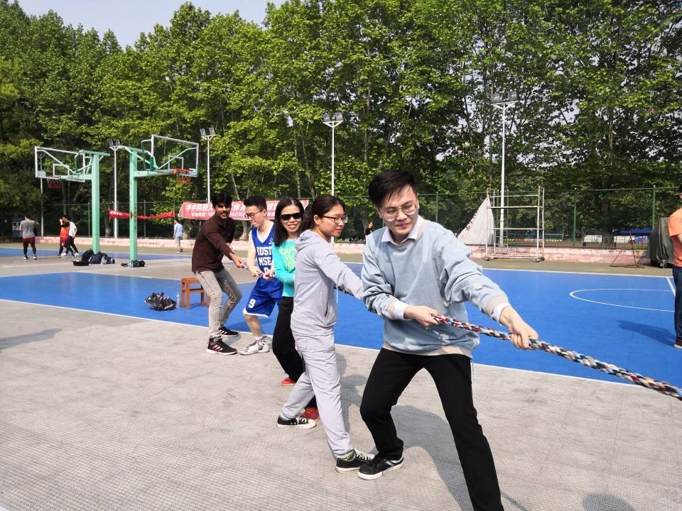 各参赛队伍精神抖擞,许多未参赛的师生也前来为选手助威加油,十三支队伍都以高度的热情参与比赛中,学院常海欣教授课题组职工M.Younis也随着参赛队兴致勃勃地参加了“三项拔河”项目。赛场上,处处可见同学老师的笑颜。有的同学为吹气球而涨红了脸,有的同学拼尽浑身解数拔河,努力将红布拉入自己队怀中,有的同学为把羽毛球接入筐中灵活地扭动着腰身。