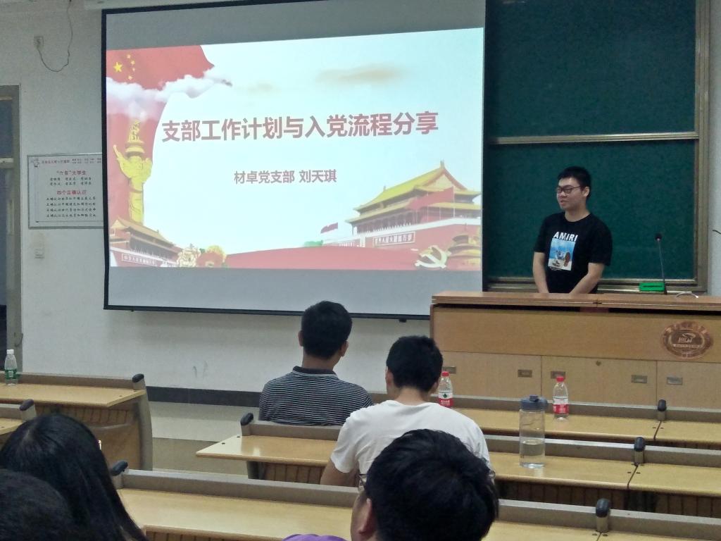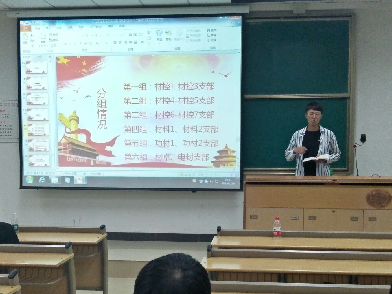 接下来,博士生党员李继康(2017年曾任材料一支部书记)同志带领同学们在学习《中国共产党支部工作条例》的基础上就本科生党支部的组织力从哪里来这一问题与大家进行深入交流。他详细说明要从三个方面下功夫——在健全组织生活制度上下功夫、在提升党支部感情氛围上下功夫、在提升培养党员质量上下功夫。