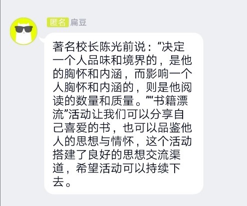 在此次活动中,研究生各个宿舍都积极参与,通过“曝”出你的优秀舍友投稿了许多风趣幽默而又和谐友爱的宿舍回忆,展现了当代研究生丰富的宿舍文化生活。同时,本次活动收集了研究生宿舍室友互帮互助案例,并推动开展了部分宿舍楼内的书籍漂流活动,得到了很好的反馈,充分体现了研究生团结、互助、友爱的精神。